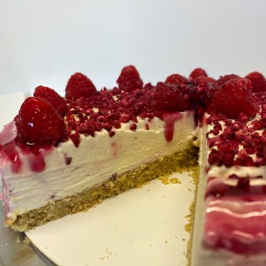 Raspberry & White Chocolate £25.95/ per slice £3.75